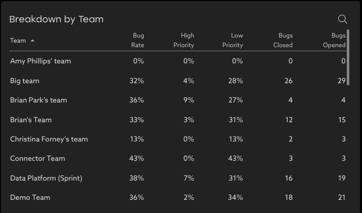 View the count of bugs opened each day of the selected time period. This view helps you understand patterns and spot unusual spikes.