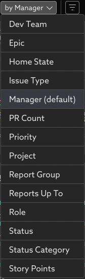 By default, groups are based on manager, but can be pivoted by other options such as by project, priority, or role.
