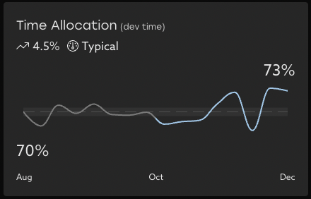 The pulse page also helps teams understand their top investments across a period of time. These tiles show the fraction of the team's time invested in a specific area, how that has changed since the previous period, and AI summarizations of what the work was specifically about.